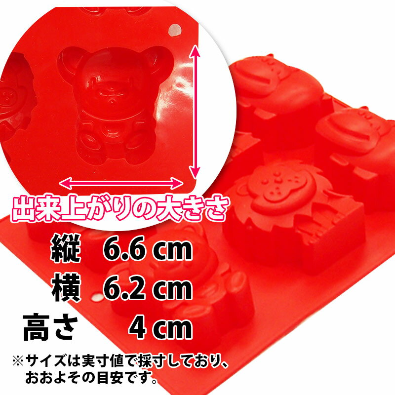 ◆一緒に購入で送料無料!! ◆送料無料まであと少し!ミニサイズをプラス!! 商品名 シリコンモールド 6個取 動物型 赤色 商品説明 ハンドメイドに色々使えるシリコン型です。