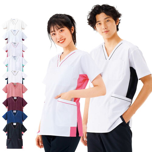 2379 ストレッチ切替スクラブ【医療 ナース 看護師 白衣 レディース メンズ 女性 男性 男女兼用】