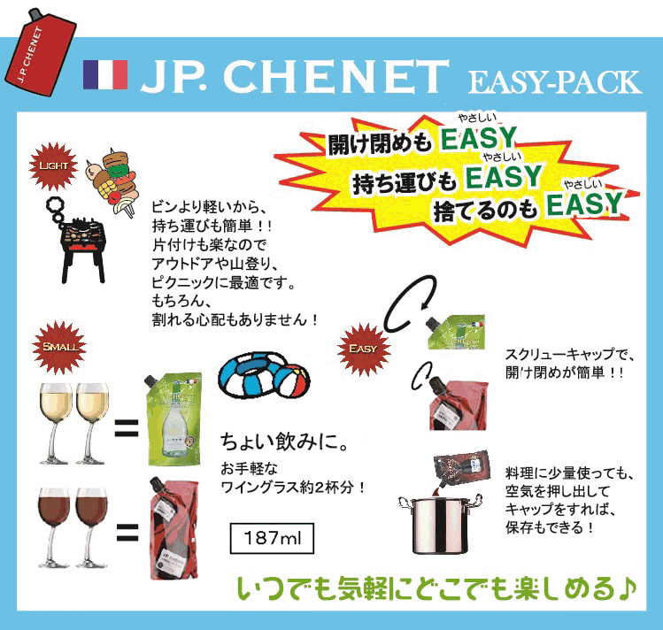 白ワインとそれに合う1日の疲れを癒すおつまみセット! 自分へのご褒美に最高の贅沢な時間を! ■J.P.シェネ コロンバール シャルドネ イージーパック 白ワイン パイナップルやりんごなどの程よい甘み、きれのよい酸味で清涼感タップリ。